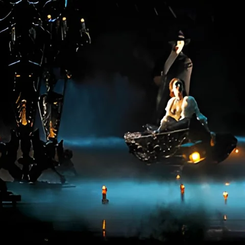 وبعد فترة تقيم أوبرا باريس مسرحية "فاوست" وتكون (كارلوتا) السيدة الأولى فيها لكن هذا كان ضد رغبة (إريك) ، ورداً على رفضهم لإبقاء الحجرة رقم 5 شاغرة له لـ "شبح الأوبرا" يجعل (كارلوتا) تخسر صوتها وتنهار الثريا الضخمة المعلقة على الجمهور.