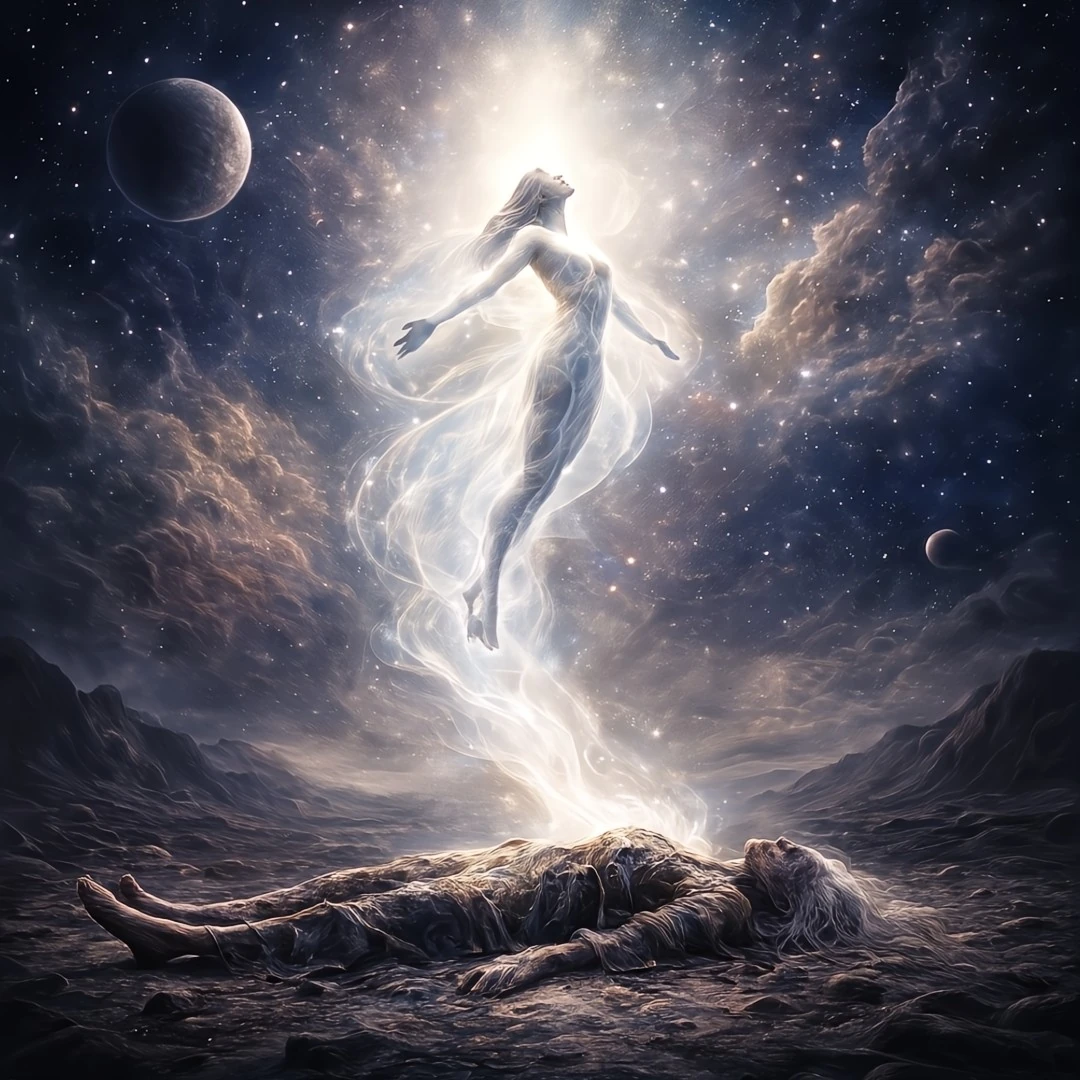 وجدت الذات نفسها في هذا العالم الكثيف داخل جسد محدود العمر، غلافٍ يسمح للوعي باختبار الحياة المادية دون أن يكون هو حقيقة الوجود. فحين ينهار الجسد وينتهي دوره، لا تنطفئ الشرارة التي سكنته؛ بل تنتقل إلى مستوى أخف، كعبور هادئ من غرفة إلى أخرى.